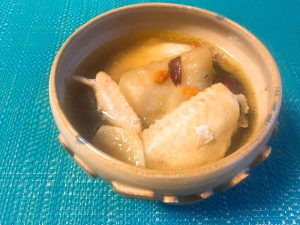 鶏肉でお出汁をとって、冬瓜と枸杞の実、そして棗を一緒にコトコトさせただけなのですが、これが体にスーッと沁みていくようで、美味しいのです。