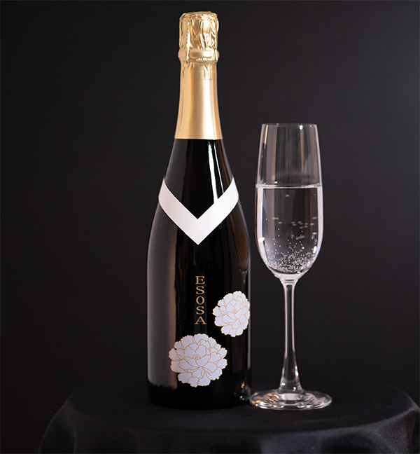 「ESOSA」は、乾杯の瞬間にふさわしい“きめ細やかな泡立ち”と、華やかでフルーティーな香りが特徴のスパークリング日本酒です。グラスに注いだ瞬間、立ち上る泡とともに、ラグジュアリーで非日常な乾杯体験を演出します。