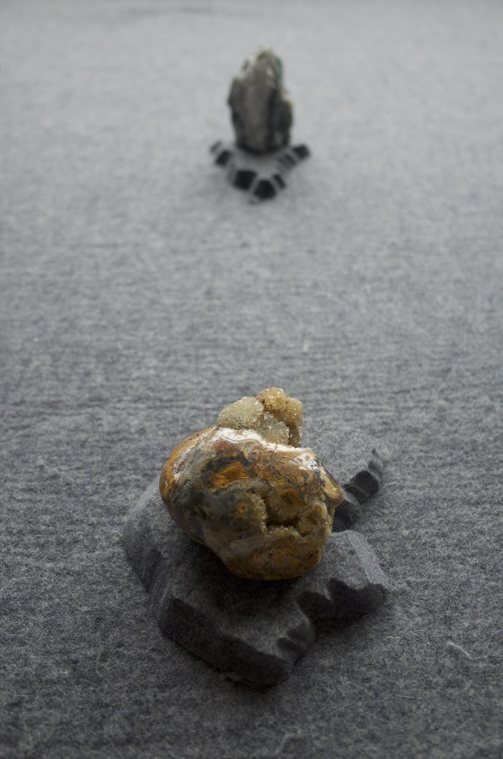 膨大な収集物の中から選び抜かれた一点一点に “空間を与える” というコンセプトのもと、フェルトで彫刻的に削り出された空間作品とともに構成。公に明かされることのない〈amachi.〉の思想の源泉を体感できる空間です。