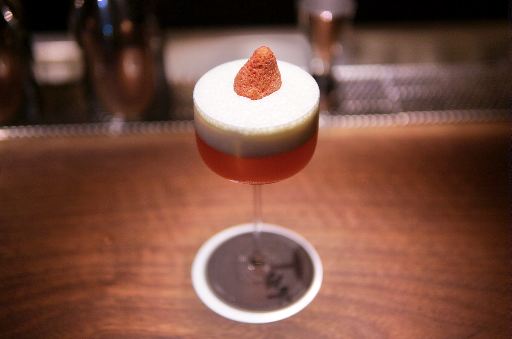 苺とミルクの優しい甘さを透明感ある仕立てに。バニラ香を添えた、日本の“カワイイ”を映すカクテル。 日本発祥のショートケーキをカクテルで再解釈。苺は“カワイイ文化”の象徴であり、乳製品はミルクウォッシュを用いて透明感と軽やかな口当たりに。バニラは菓子の香りを補い、デザートらしさを演出。海外のケーキが濃厚で重いのに対し、日本のショートケーキは軽やか。そうした“日本独自の可愛い洋菓子文化”を語れる一杯です。2600円(税込)
