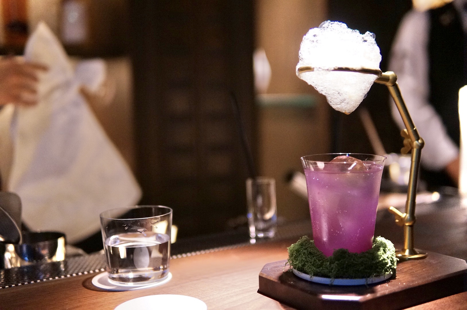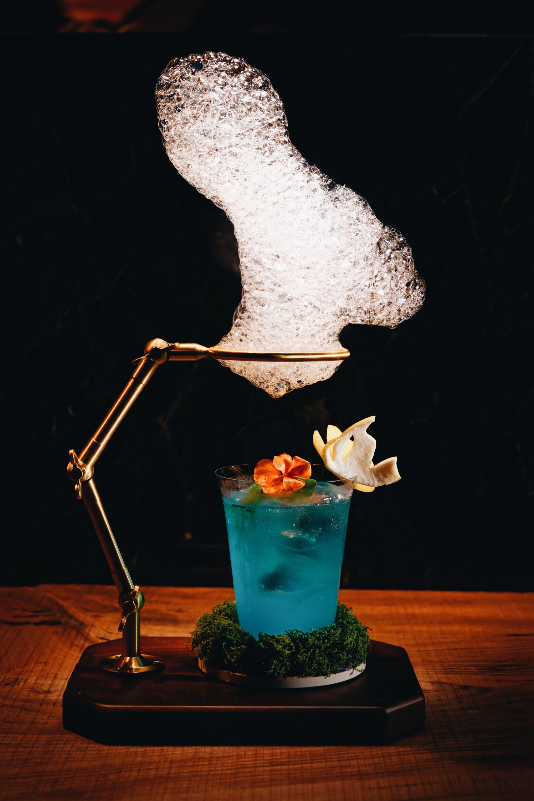 テキーラのキレとライチの瑞々しい甘みが軽やかに持ち上げ、そこへディルとハーブの青い香りが重なり、飲み進めるほどに味わいが変化していきます。トップにコーヒーフレーバーのエディブルクラウドを浮かべ、コーヒーのビターな余韻とハーブの爽やかな香りが鼻先を抜けます。大人の遊び心と繊細なバランス感覚が光る、五感で愉しむモダンな一杯です。