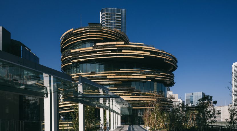 印象的でシンボリックなスパイラル状の建物は、隈研吾建築都市設計事務所による外装デザイン。木材をふんだんに用い、緑に覆われた外観が屋内外をシームレスにつなぎます。植栽の多くは日本の在来種で構成され、季節の移ろいを感じさせます。