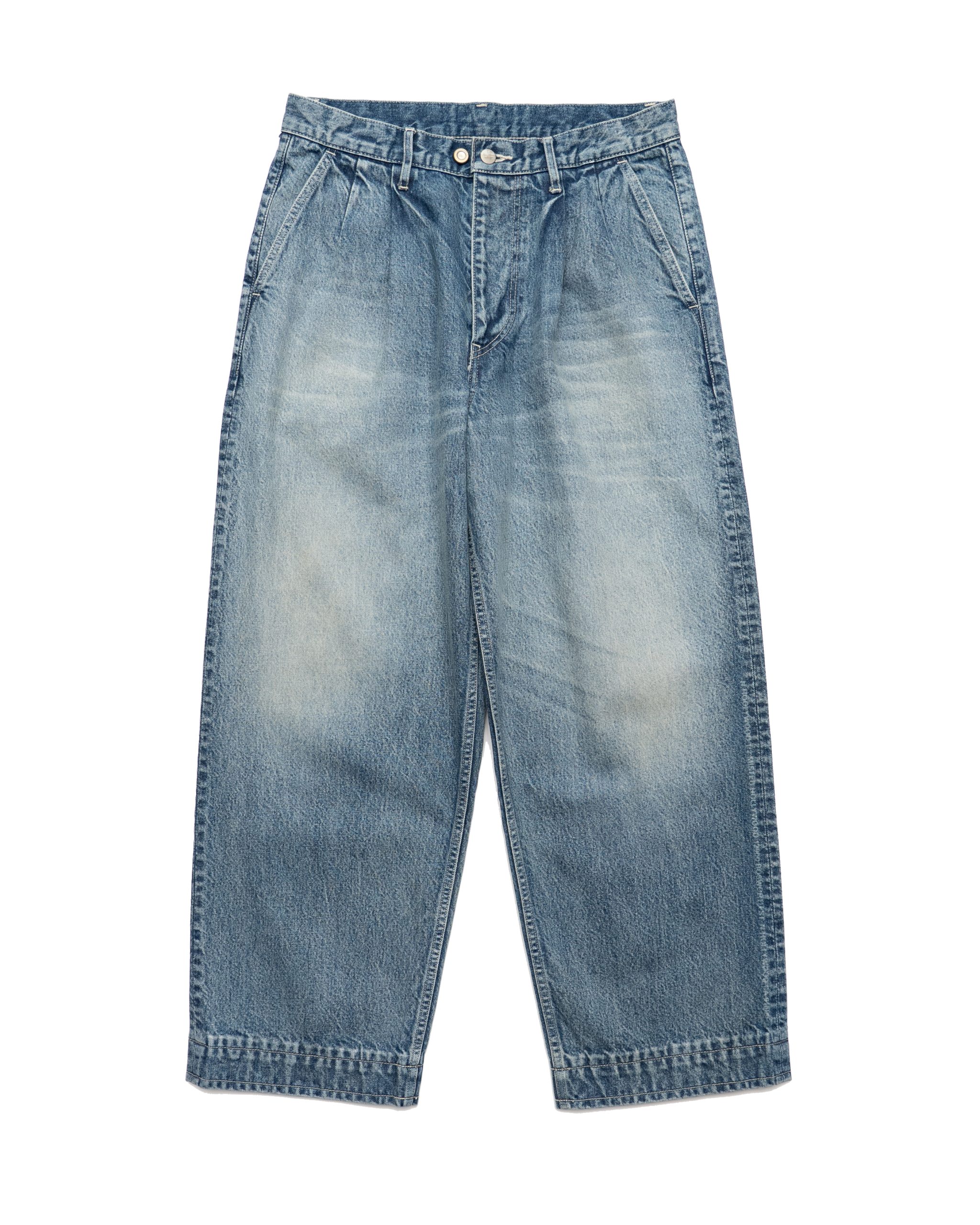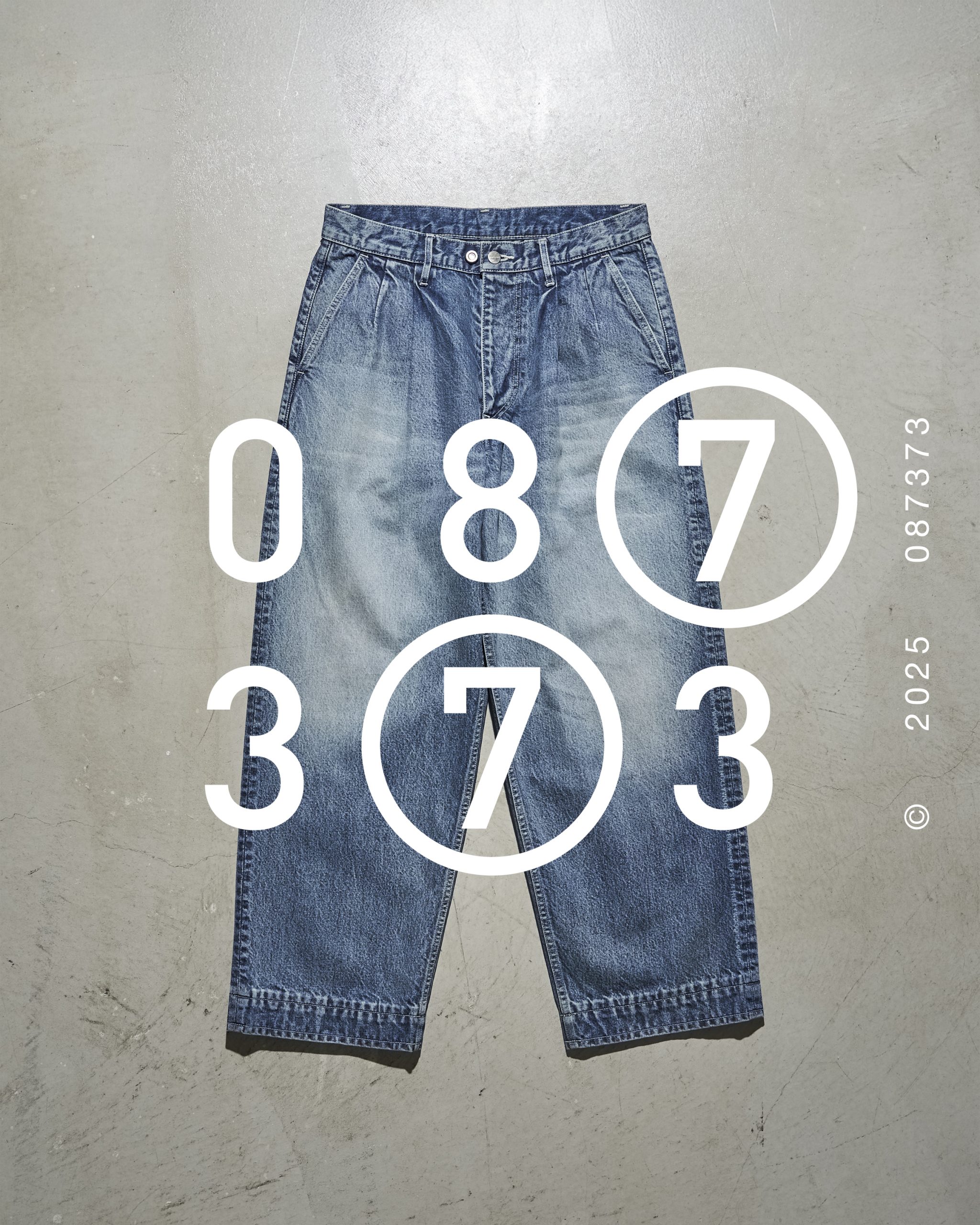 また、Graphpaper のタック入りデニムパンツをベースに、〈N.HOOLYWOOD〉 で使用される 13oz デニムを用いて再構築した “Two Tuck Tapered Pants” は、加工を施すことでヴィンテージのような深みのある表情を演出。また、片玉縁のヒップポケットや両ブランドのネオバボタンをはじめ、左脚のロゴや右後ポケットの “087373” レーザープリント、オリジナルフラッシャーなど別注ならではの仕様を随所に取り入れた特別な一本です。