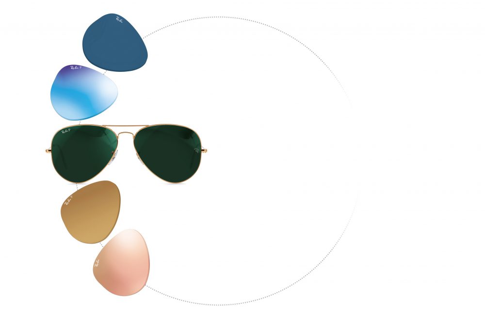 レンズは全部で15種類、レイバンの代表的なレンズカラーG-15やグラデーション、そしてミラーまで、様々なバリエーションをお楽しみいただけます。また、フラットレンズや偏光レンズといったスペシャルなタイプのレンズにも対応しています。