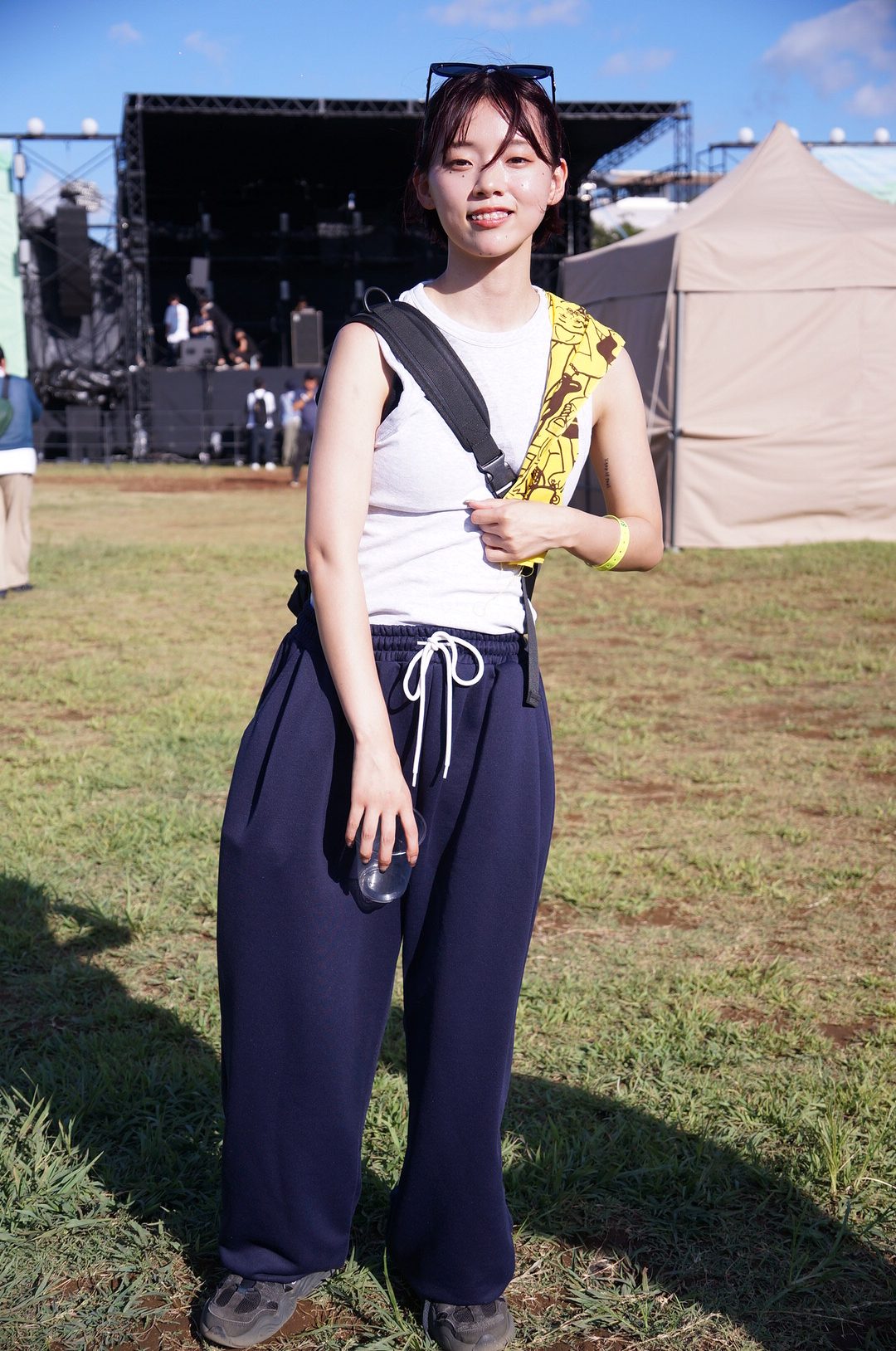 来場者の装いは多様性にあふれ、まさに“自由そのもの”。音楽に耳を傾けながらも、それぞれが思い思いのスタイルで個性を表現する姿が随所に見られ、ファッションと音楽が一体となった、フェスならではの光景が広がっていました。