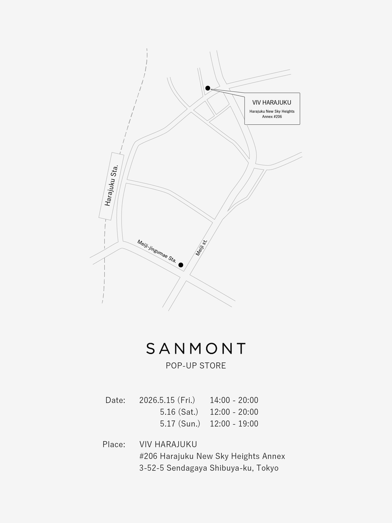 SANMONTは、東京・千駄ヶ谷にてPOP-UP STOREを5月15日(金)〜5月17 日(日)までの3日間開催します。