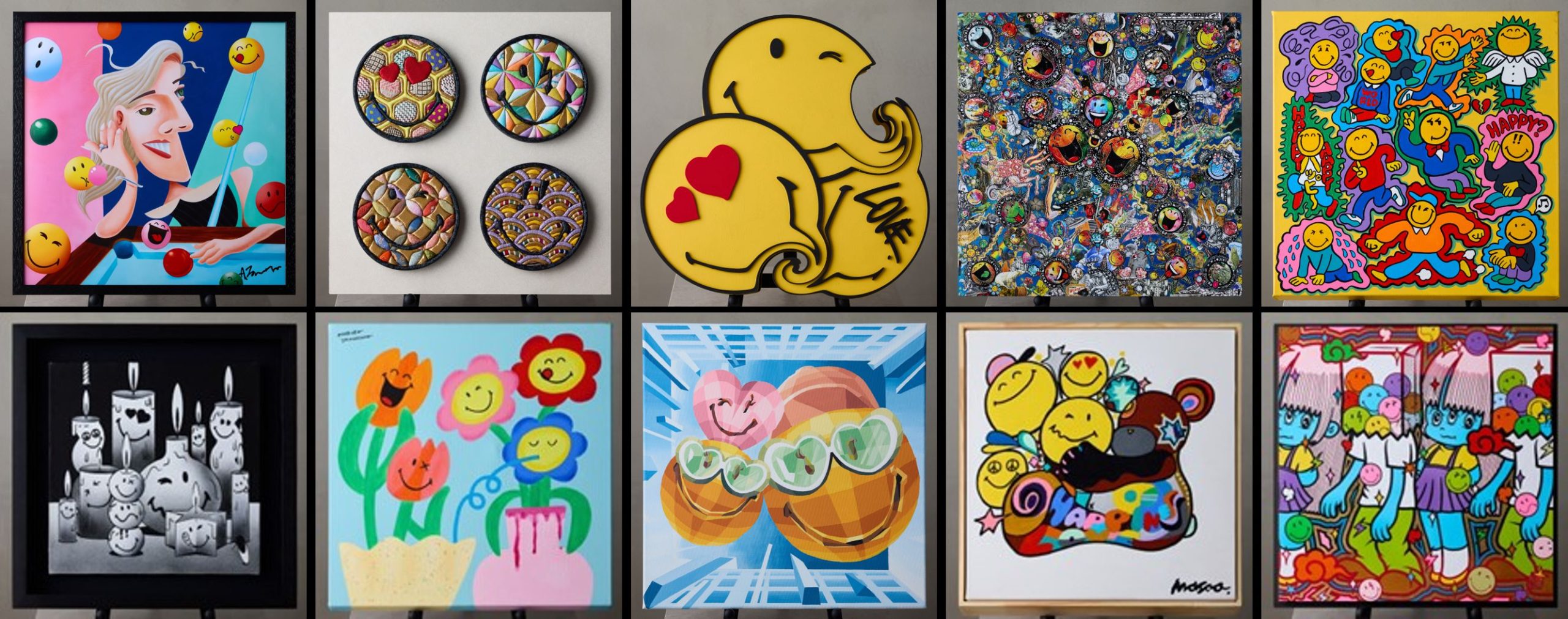 アーティストたちは、SmileyWorldの多彩な感情テーマを独自に解釈し、それぞれの視点から表現しました。絵画、イラスト、デジタルアートなど多様な技法を通じて、「喜び」「愛」「希望」「驚き」などが鮮やかに描き出された本展示。