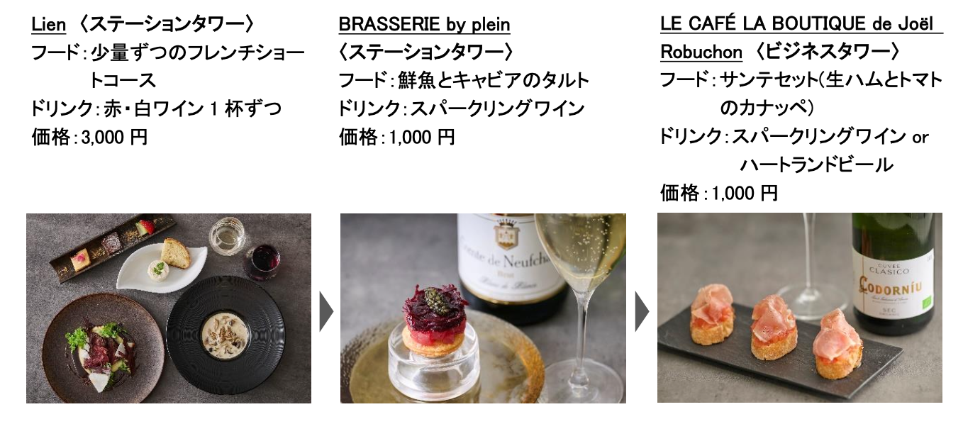 華やかな見た目で気分の上がるメニューを集めた、大人女子会におすすめの豪華なセットをご紹介。「Lien」からは、約4,000円相当の料理を小ポーションにしたフレンチのショートコースとワイン2杯を含む3,000円セットが登場。洗練された大人の時間を演出する「BRASSERIE by plein」のキャビアのタルト×スパークリングワインや、「LE CAFÉ LA BOUTIQUE de Joël Robuchon」のサンテセット×ワインと合わせて巡り、贅沢な食事時間を過ごしてみてはいかがでしょうか。