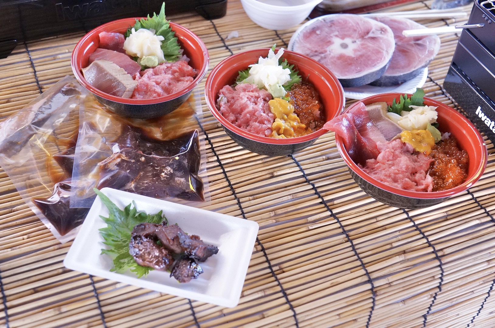 三崎直送の天然まぐろを主役に、うにや牡蠣といった海の幸を“市場のように選び、その場で焼く”という体験型スタイルがこのイベントの大きな魅力。会場には大漁旗やのぼりが掲げられ、まるで漁港の市場に足を踏み入れたかのような空間が広がります。