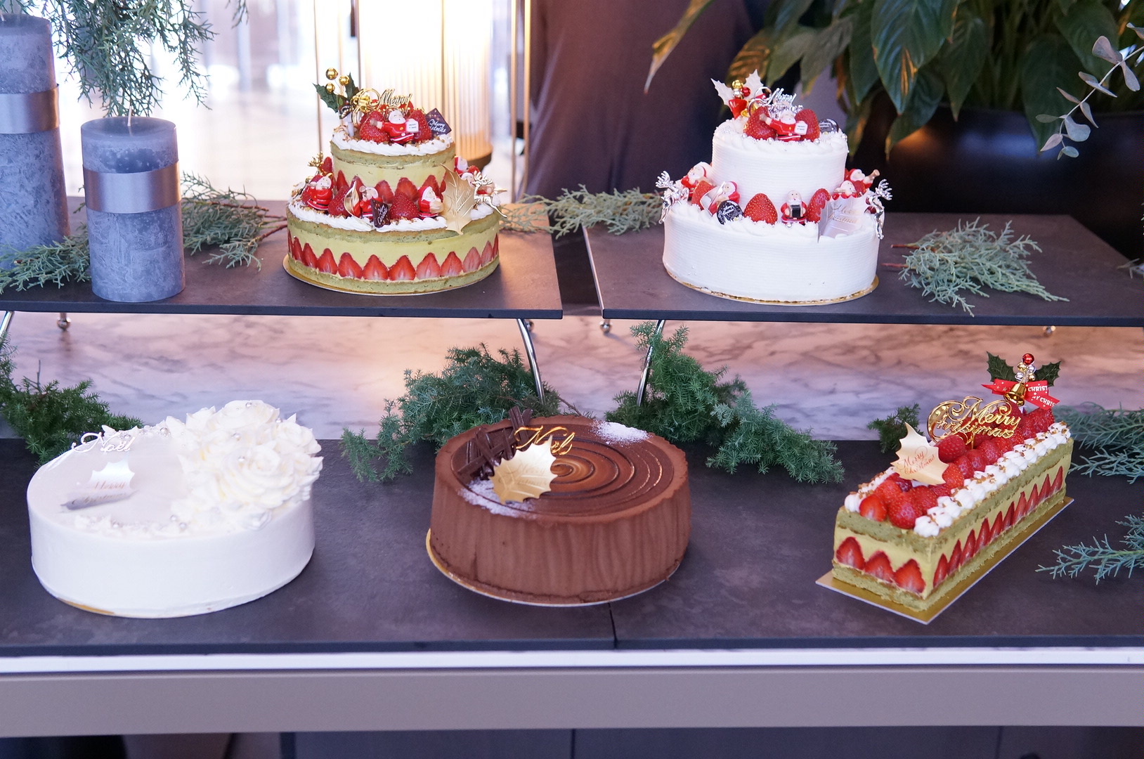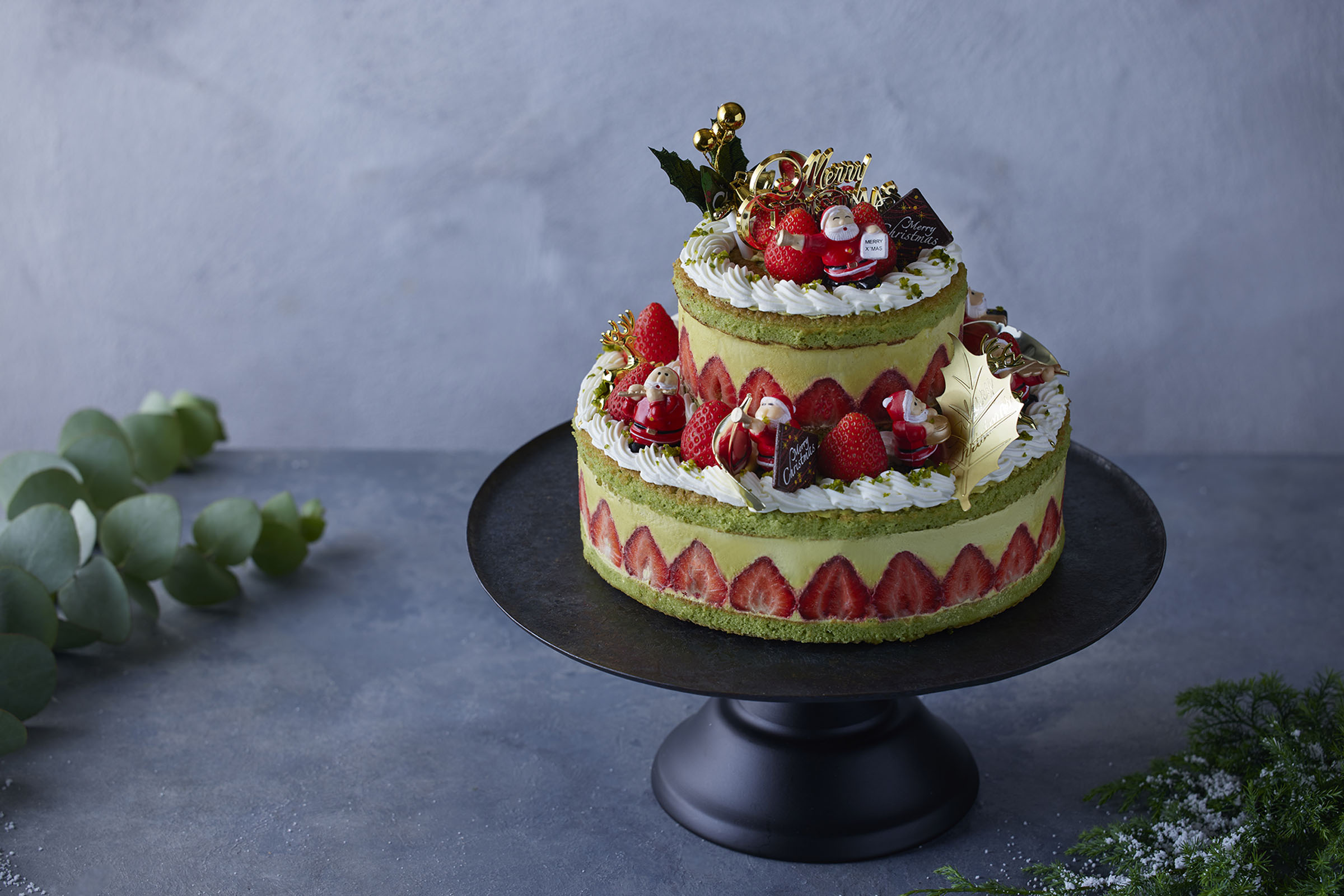 左より:2段サンタフレジェ、2段サンタショートケーキ