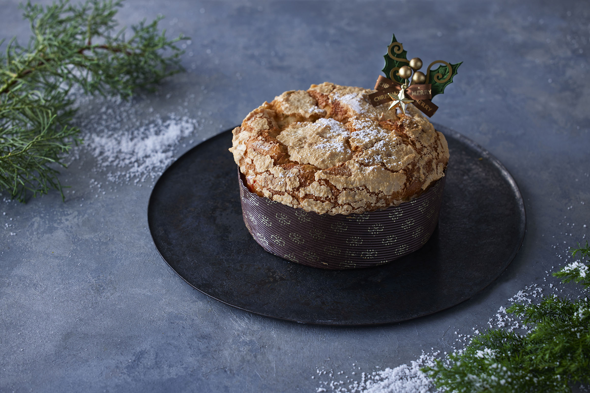 イタリア・ミラノが発祥の伝統的なクリスマスブレッド。今年は、ヨーグルトを隠し味に使用したバター香る生地に、レーズン、キウイ、マンゴー、パインなど彩り豊かなドライフルーツをふんだんに混ぜ込みました。ほのかな酸味が華やかな甘さを引き立て味わいに奥行きをもたらします。ふわふわのパン生地の上にはサクサクとしたマカロンクリームを。食感のコントラストも楽しめる、新作パネトーネです。