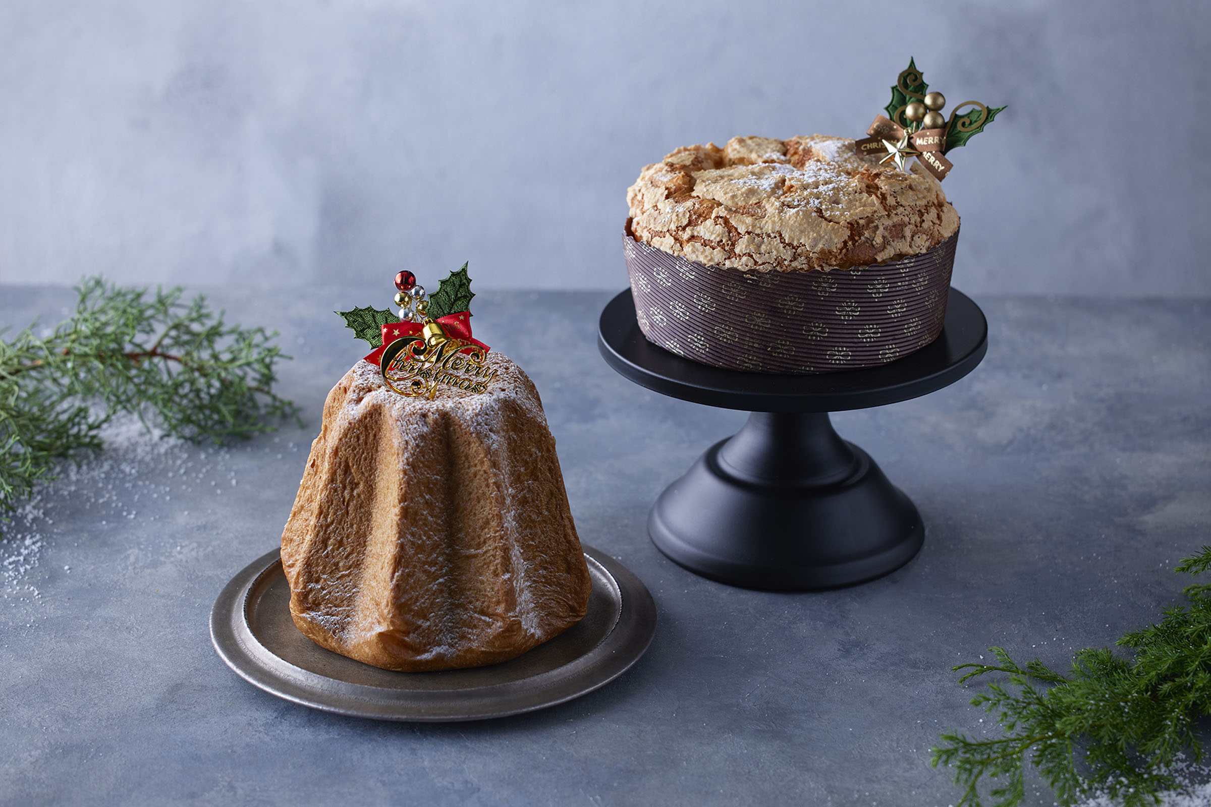 左より : パンドーロ、パネトーネ