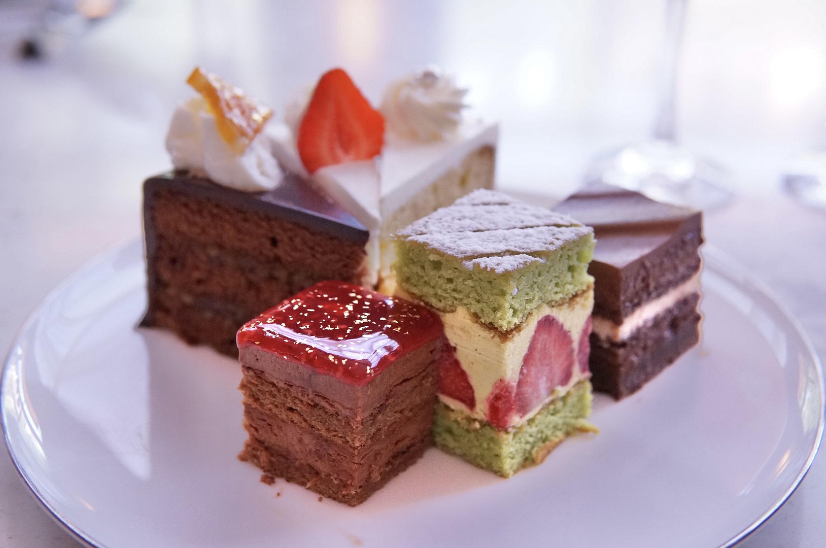 左より:ストロベリーショートケーキ、オレンジザッハ、ラズベリーショコラ、ダブルフロマージュ