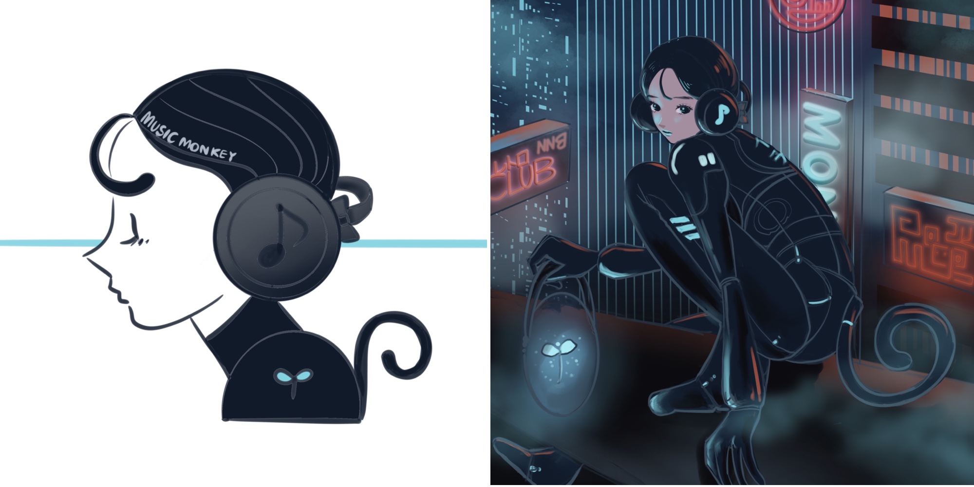 日本猿や猿のキャラクターから猿を感じれる特徴を探した。 機械的な要素はサイバーパンクを参考にした。
