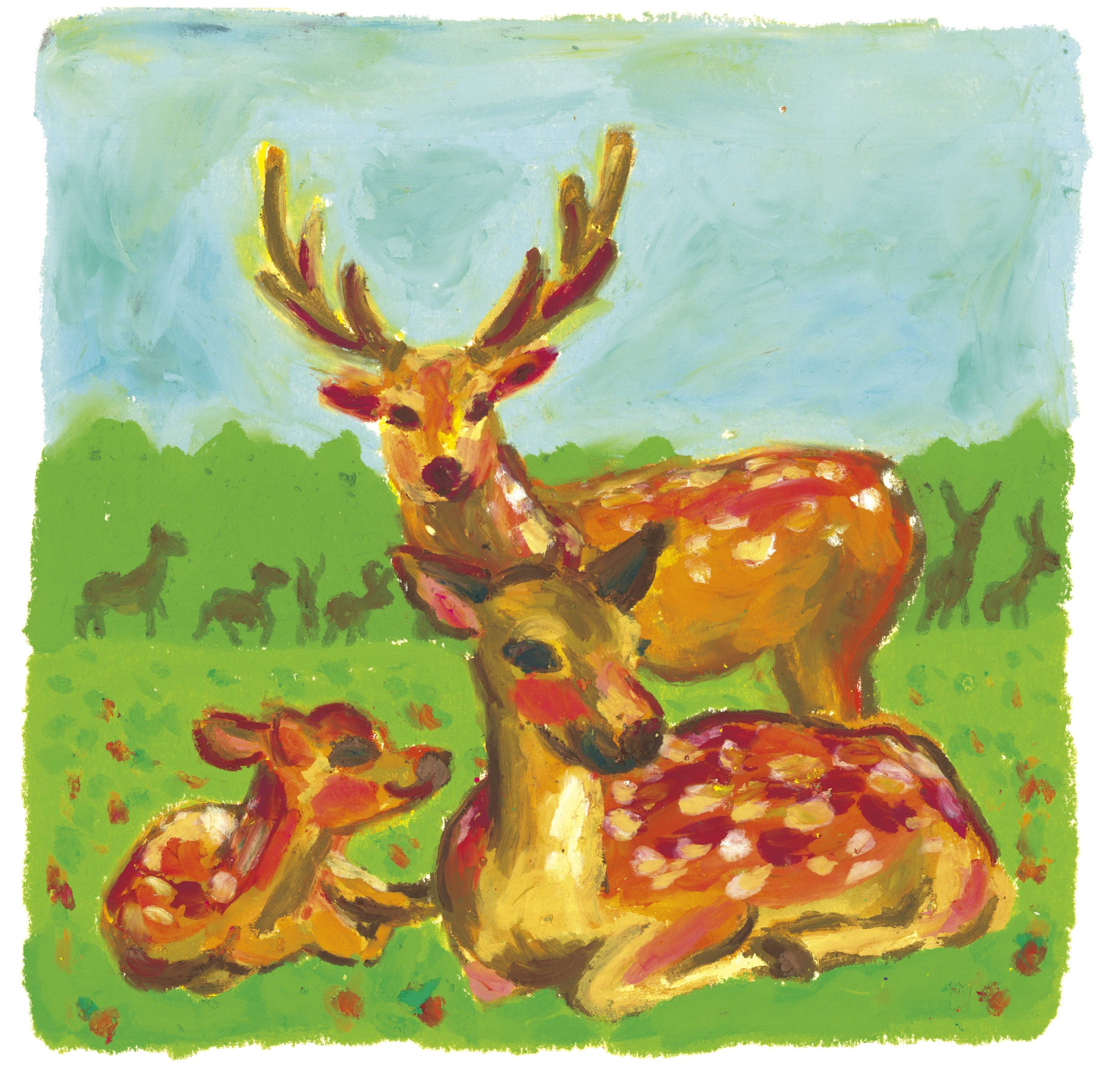 雨風太陽「子ども食べるしんぶん」鹿のくる道 鹿肉が食卓に届くまでを描きました。 イラスト、デザインの制作募集中です。 お気軽にご相談ください。